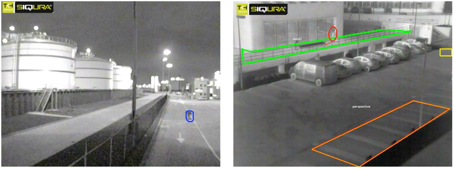 Termální kamera Siqura TC620-PID je plně integrované řešení s vestavěným softwarem ObjectR-PID pro vytváření např. virtuálních plotů. Jde o velmi zajímavý způsob jak dohlížet perimetr a mít okamžitý přehled, co se děje na okraji pozemku, obvodu budovy a případně jiných kritických budov. Termální kamera je vybavena nechlazeným senzorem s rozlišením 336x256 a vysokou citlivostí (< 50mK). Termální kamera se snadno nastavuje díky intuitivního webového rozhraní.