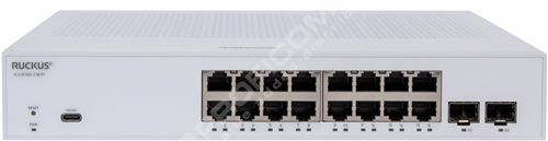 RUCKUS ICX 8100 Compact Switch, 16×10/100/1000 Mbps PoE+ 802.3at, 30W Class 4 ports, 2×1GbE SFP uplink-ports, 124W PoE budget. Power cord not included