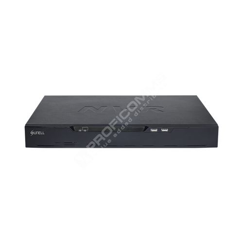 NVR záznamník Sunell pro IP kamerové systémy s možností sledování obrazu až v rozlišení 4K a napájením kamer přes datový kabel (PoE)