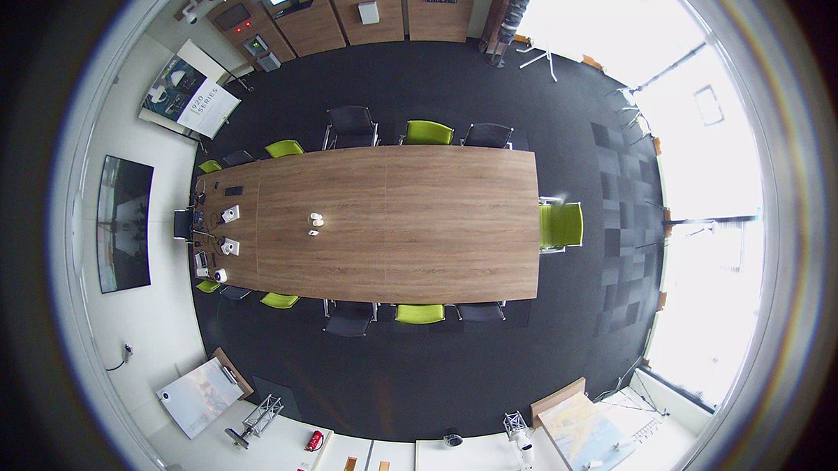 TKH Security. Kamera má fixní objektiv f=1.65mm. Ten umožňuje snímat danou scénu pod úhlem 360°. Díky takto velkému úhlu záběru se jedná o kameru s nulovým mrtvým úhlem při videodohledu.